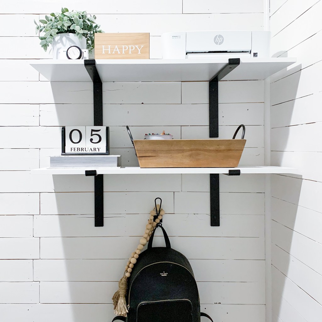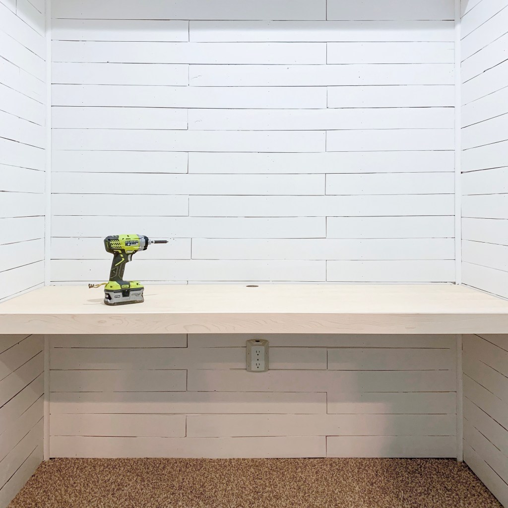 Next came the desk install and you guys…this was SO easy. We are NOT super handy people. We are the type who turn to Google or YouTube for most projects. Sometimes it works out great, other times not so much. If you can measure, cut and use a drill – you can build this desk.