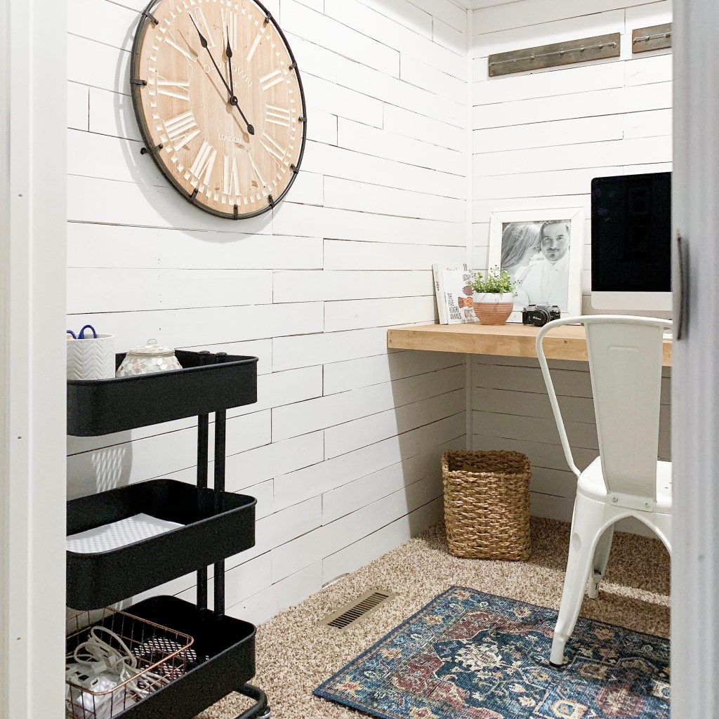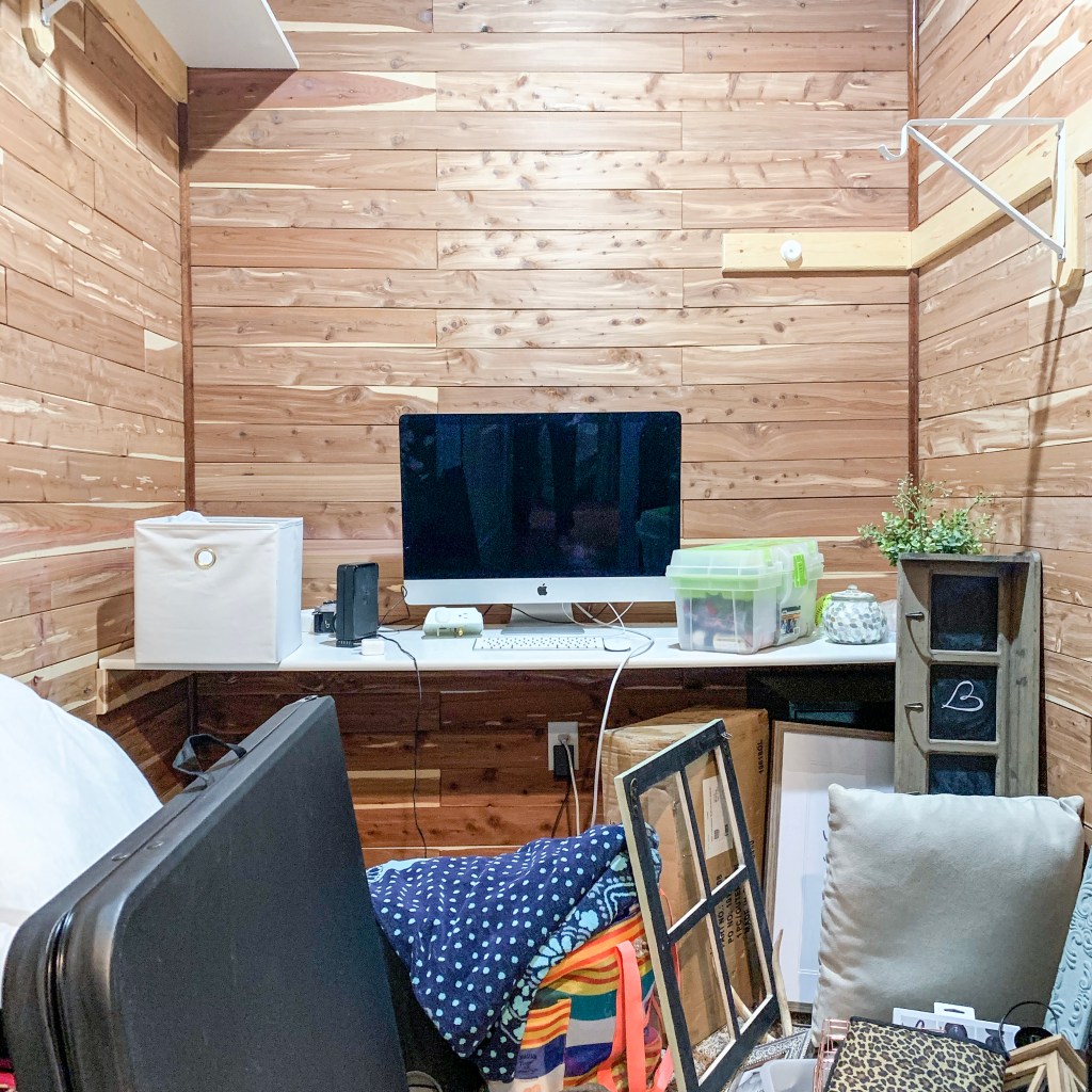 This project was so fun and SO easy! We have 2 cedar closets in our Master bedroom. One right off the bedroom and one connected to our bathroom. We didn’t really have a need for 2 huge closets, and with baby #2 due in just a few short weeks, I really wanted to make sure we had a dedicated workspace set up before his arrival – not only for when my husband is working from home, but also because I will be working from home for the 2nd half of my maternity leave.