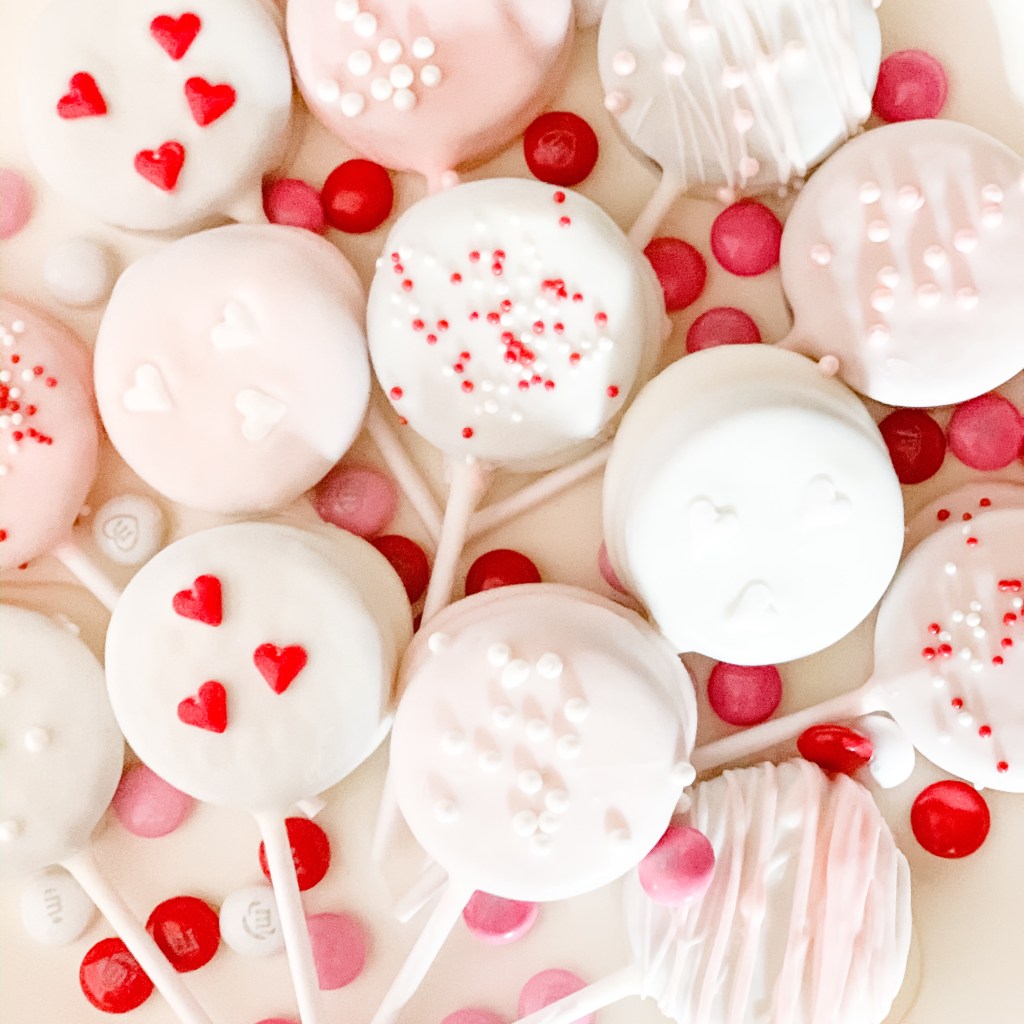 If you’re looking for a super simple yummy Valentine’s treat – look no further. I volunteered to bring snacks for my son’s Pre-K and Daycare Valentine’s Day parties, so I wanted something that was quick and easy. These Oreo pops were a breeze. These could easily be customized for any holiday or occasion. Here’s what you need: