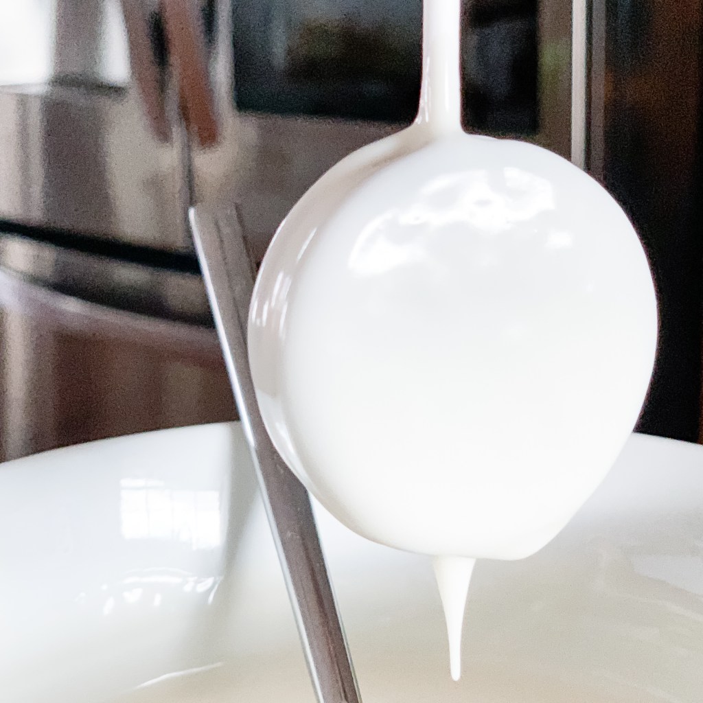 Once you have that ready, it’s time to dip your Oreo pops. Make sure the cookie is completely coated and set them aside on your parchment paper to dry. I needed to make 3 dozen of these bad boys to cover both parties. I made the first dozen white, then added a couple drops of food coloring between each dozen…that way I ended up with 3 different shades of chocolate just for a little variety.