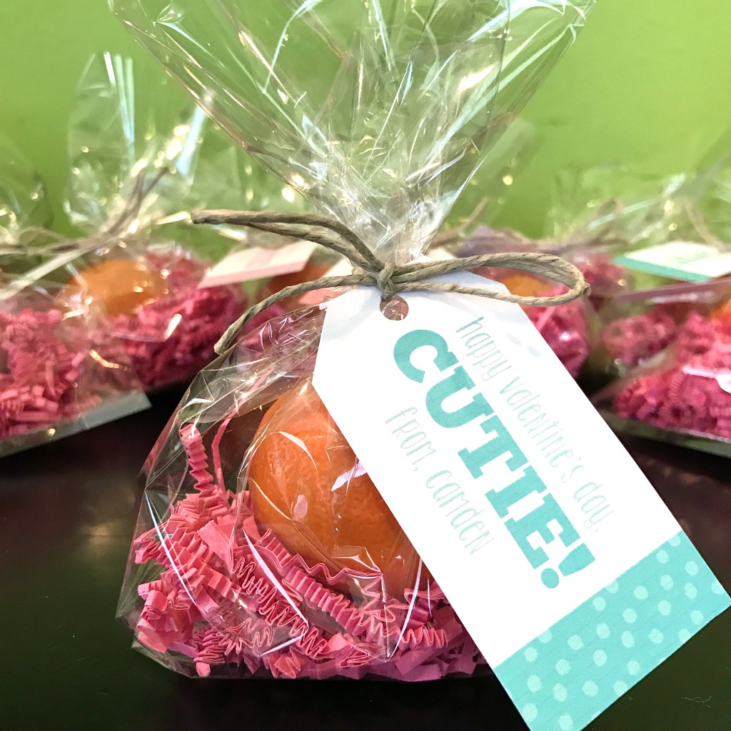 I paired these “You Color My World” tags with heart shaped crayons. See tutorial here. These would also be cute with some Skittles or other colored candy!