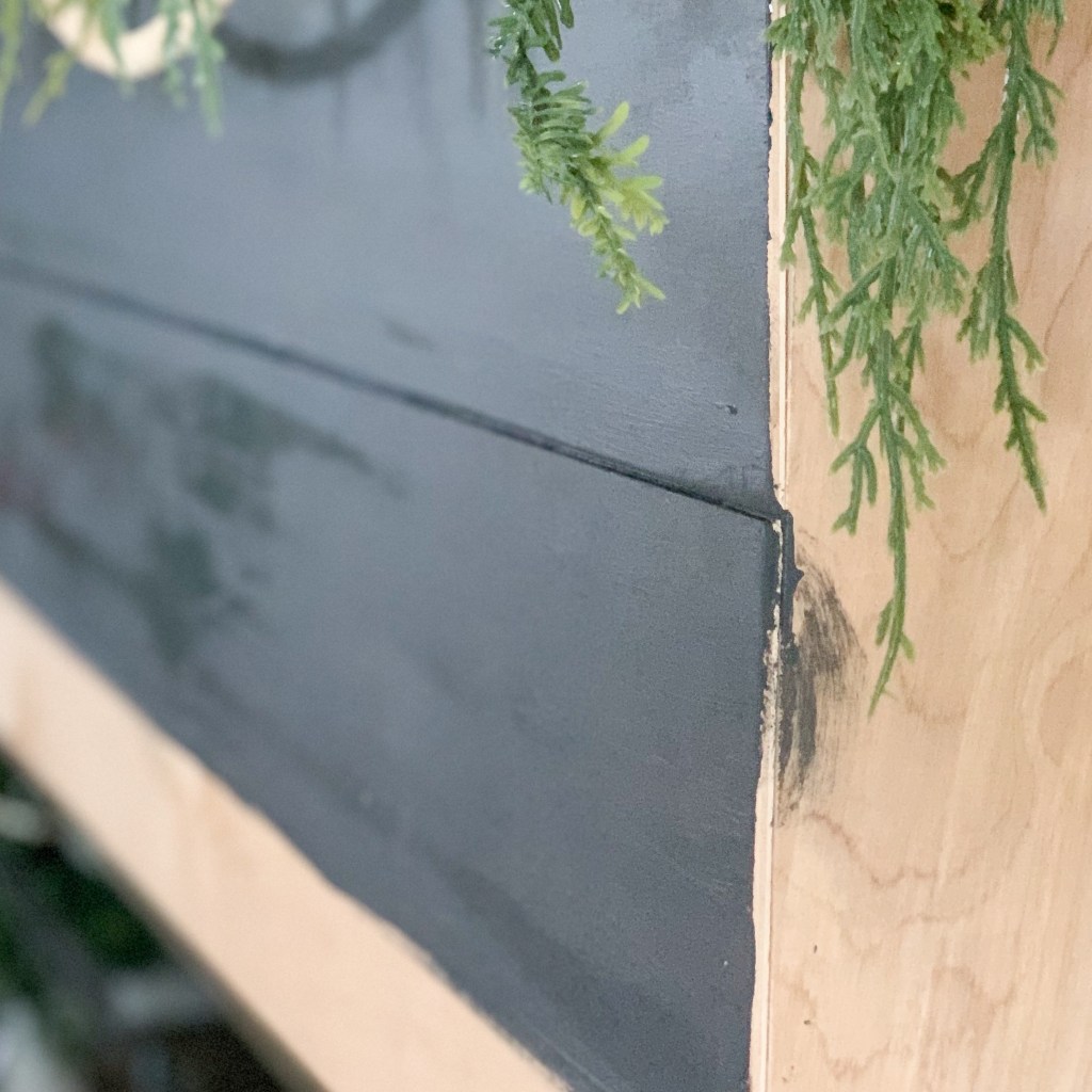 Once your shiplap is applied and painted, you can give it a finished look with some trim! I used a little bit of lattice trim for the edges and a nice 1×3 around the base. I painted these boards prior to attaching them so I wouldn’t have to worry about taping.